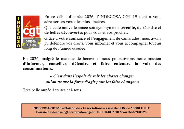 Vœux INDECOSA 19 aux adhérents