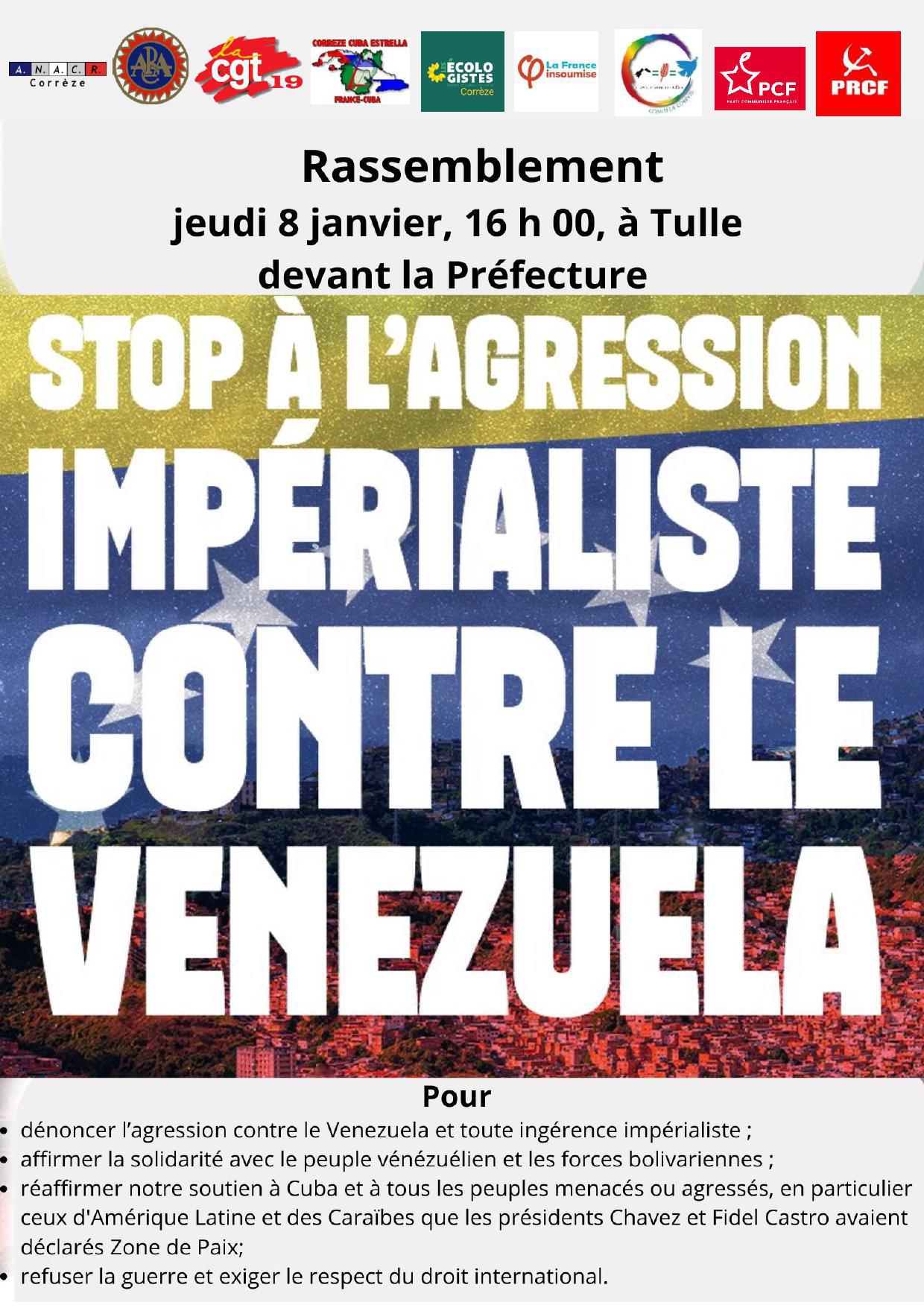 Rassemblement pour la démocratie, le droit des peuples à disposer d'eux-mêmes, pour la paix et la régulation internationale. En solidarité avec le peuple vénézuélien.