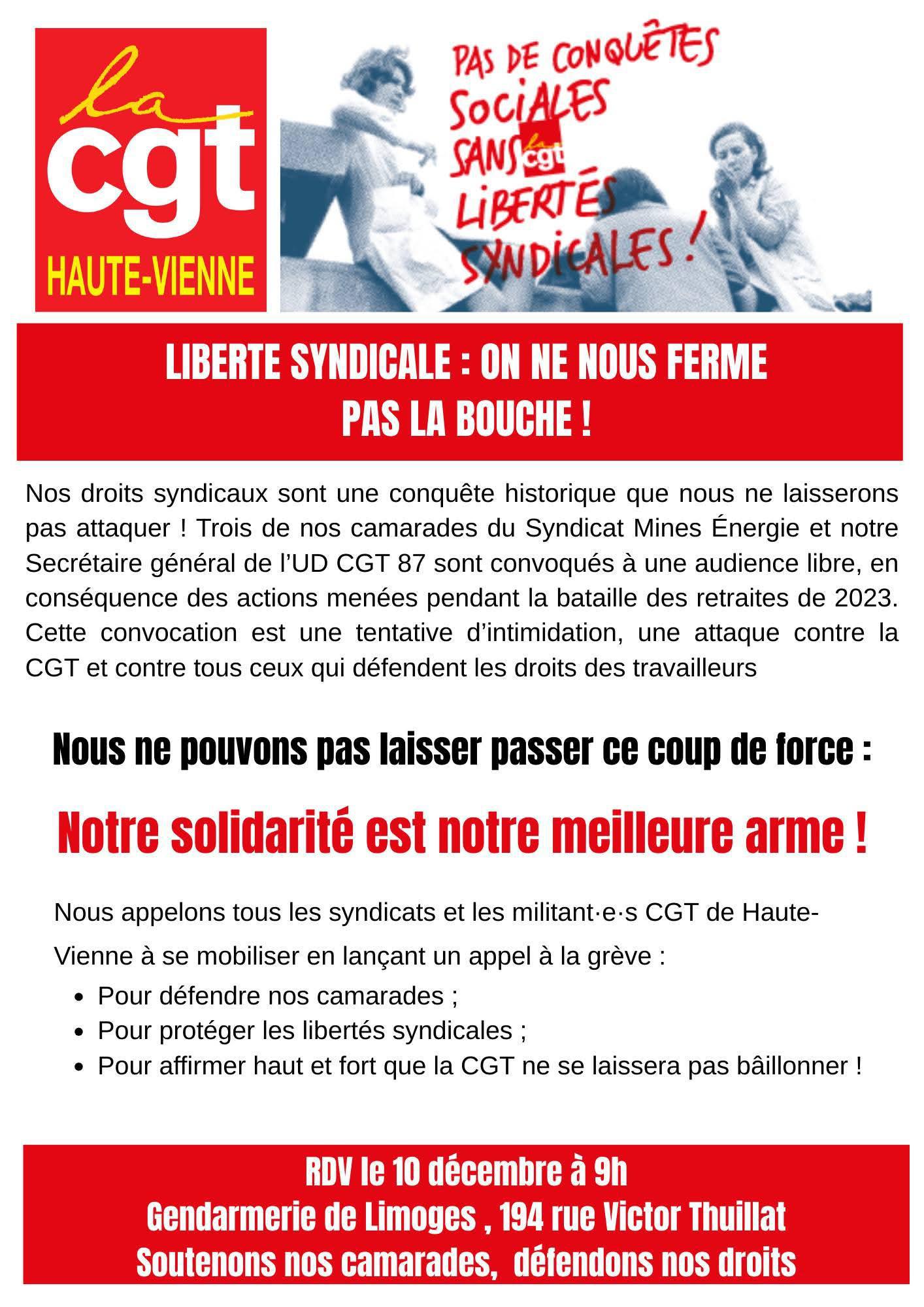 200 personnes se sont rassemblées à Limoges, dont une délégation CGT Corrèze pour dire NON à l'acharnement contre la CGT et ses militants. BRAVO et merci à tous.tes pour votre participation.